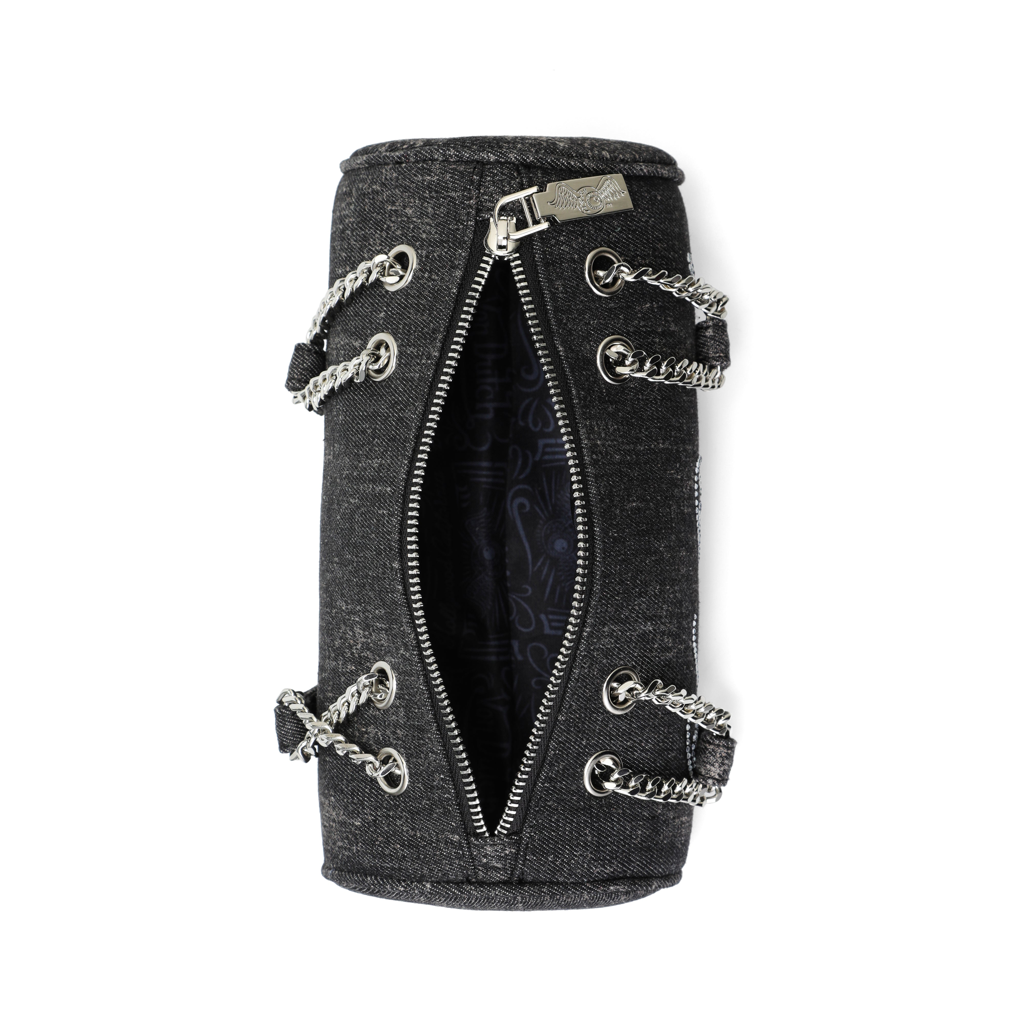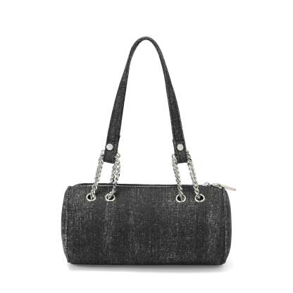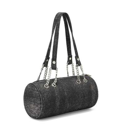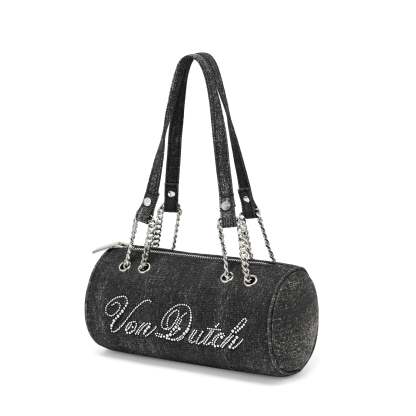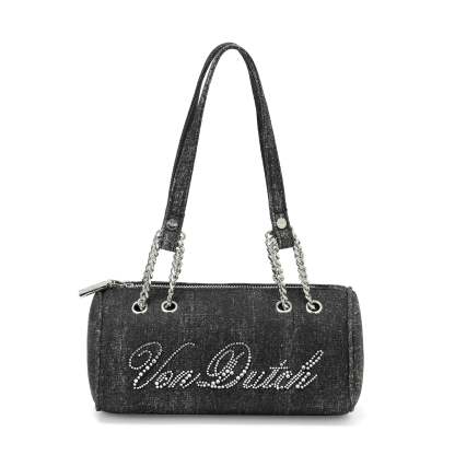 Barrel Bag - Long Barrel Black Denim Rhinestone
