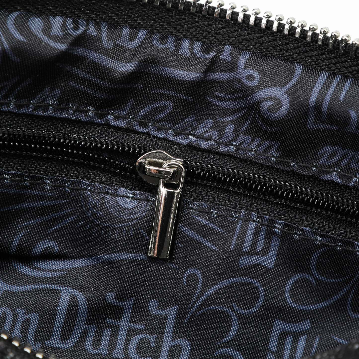 Silver-tone chain shoulder straps with reinforced trim