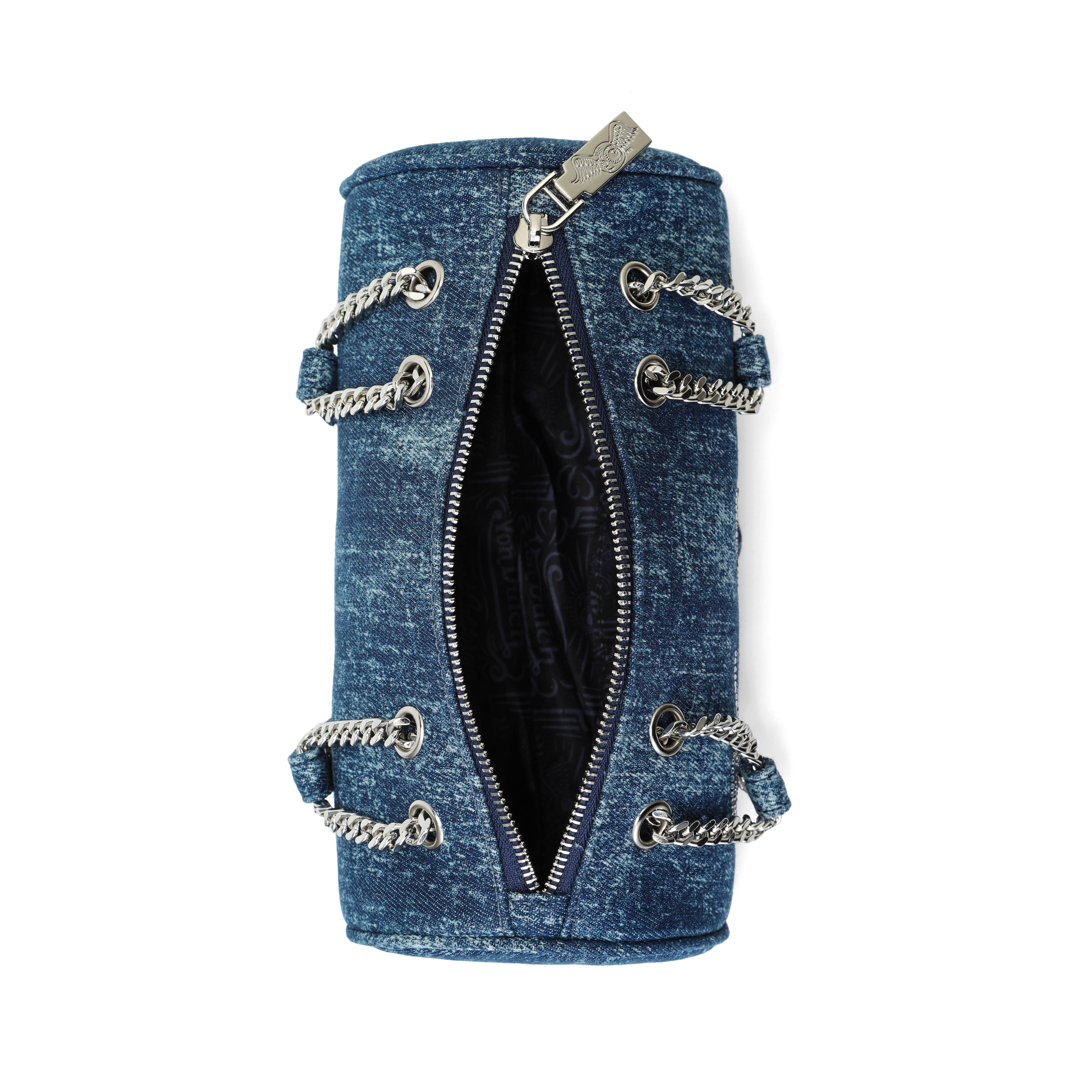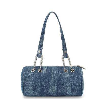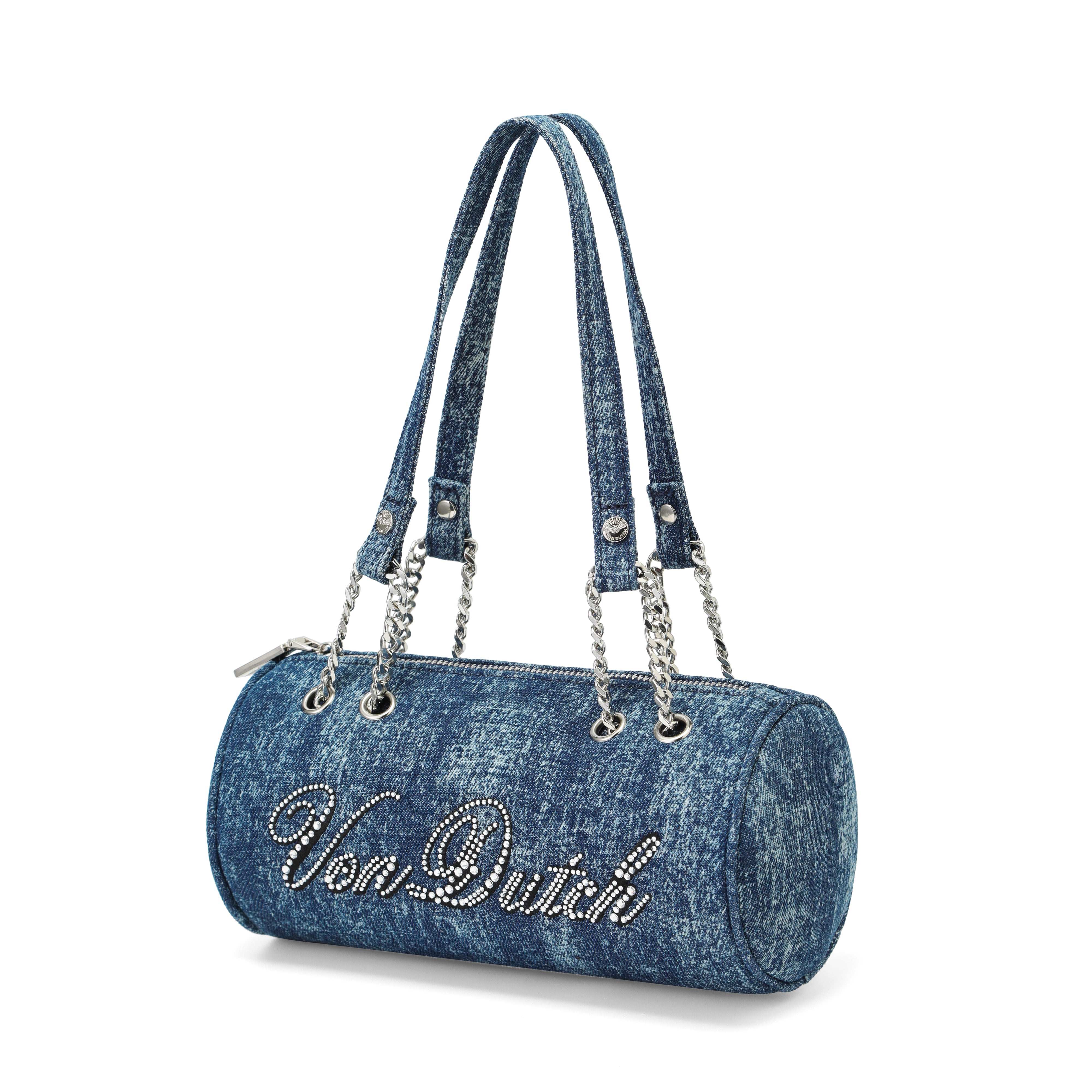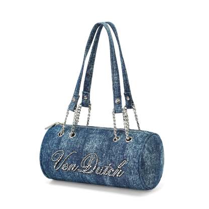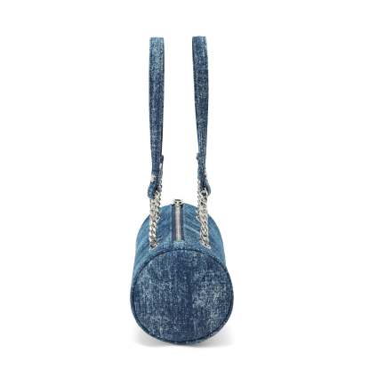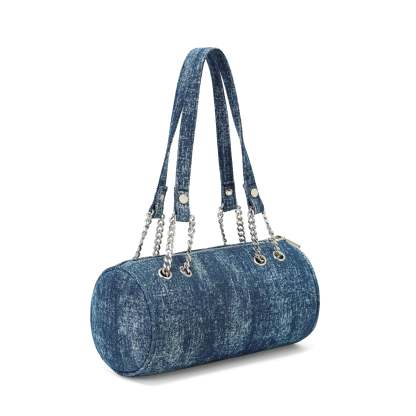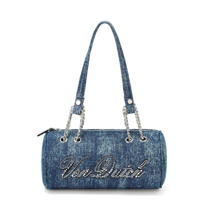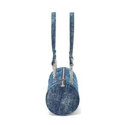 Barrel Bag - Long Barrel Blue Denim Rhinestone