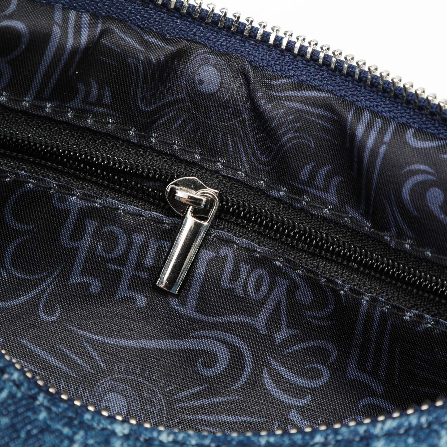 Silver-tone chain shoulder straps with reinforced trim