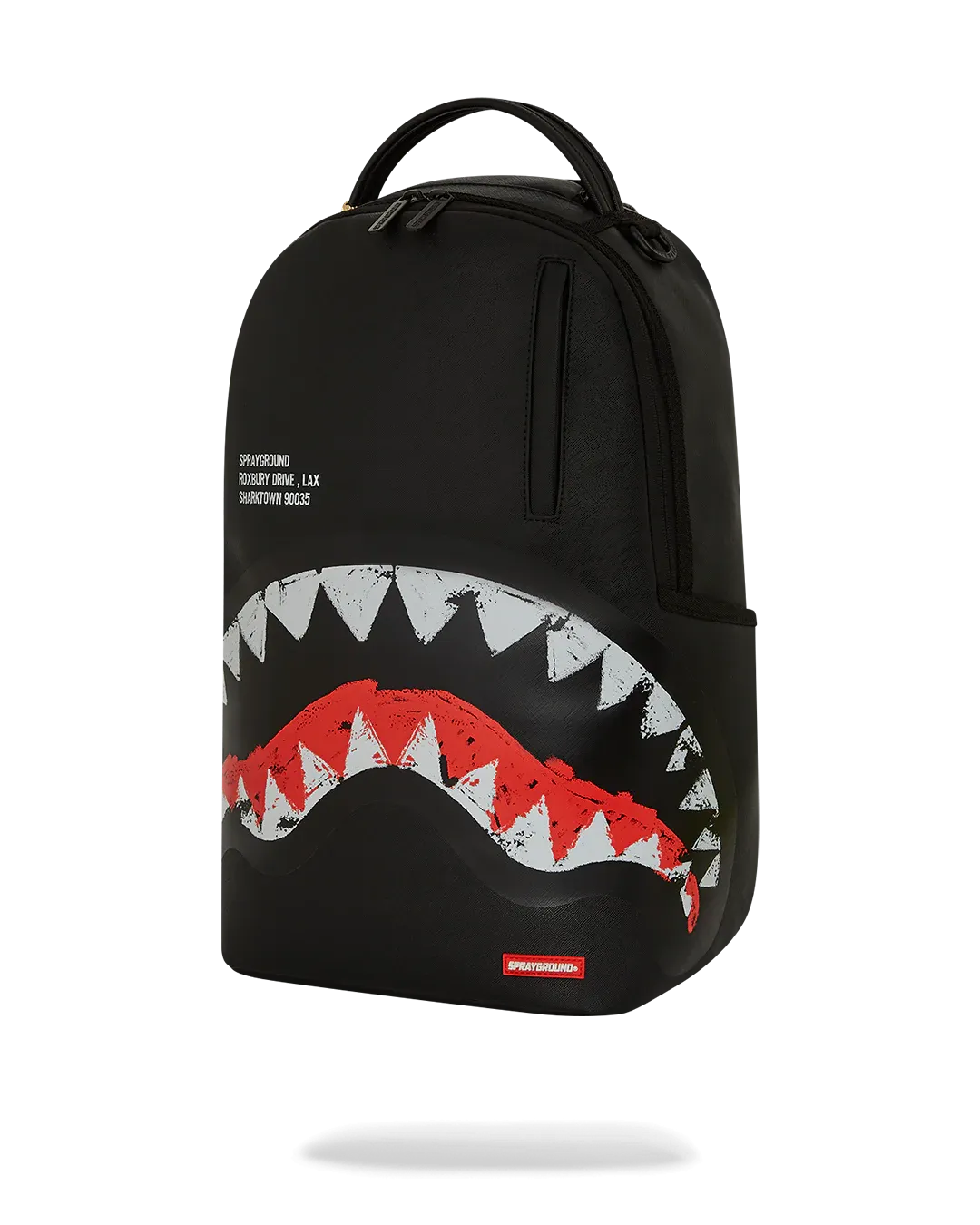 Dimensions: 18" x 6" x 11.5" • Front zipper pocket • Side pockets • Zippered Stash pocket • Separate velour sunglass compartment • Ergonomic mesh back padding • Adjustable Straps for custom sizing • Gold zippers with metal hardware • Metal "Sprayground Authentic" badge • Slide through back sleeve connects to carry-on luggage to free your hands